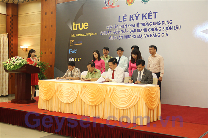 Để bảo vệ quyền lợi cho người tiêu dùng trước tình trạng hàng giả – hàng nhái – hàng không có xuất xứ rõ ràng, chiều ngày 12/05/2015 Cổng Thông tin Điện tử Chính phủ, Cục Quản lý Thị trường (Bộ Công Thương), Viện Kiểm nghiệm An toàn Vệ sinh Thực phẩm Quốc gia (Bộ Y Tế) và Cty CP VNET đã có buổi ký kết phối hợp triển khai Hệ thống ứng dụng công nghệ thông tin góp phần đấu tranh chống buôn lậu, gian lận thương mại và hàng giả thông qua Tem xác thực điện tử VTrue.