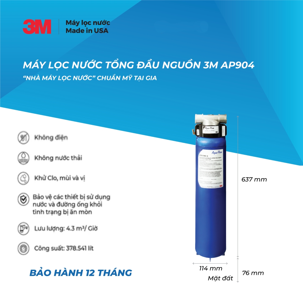 | Thể tích lọc | max 378.541 lít (tính trên nguồn nước máy cấp vào) |