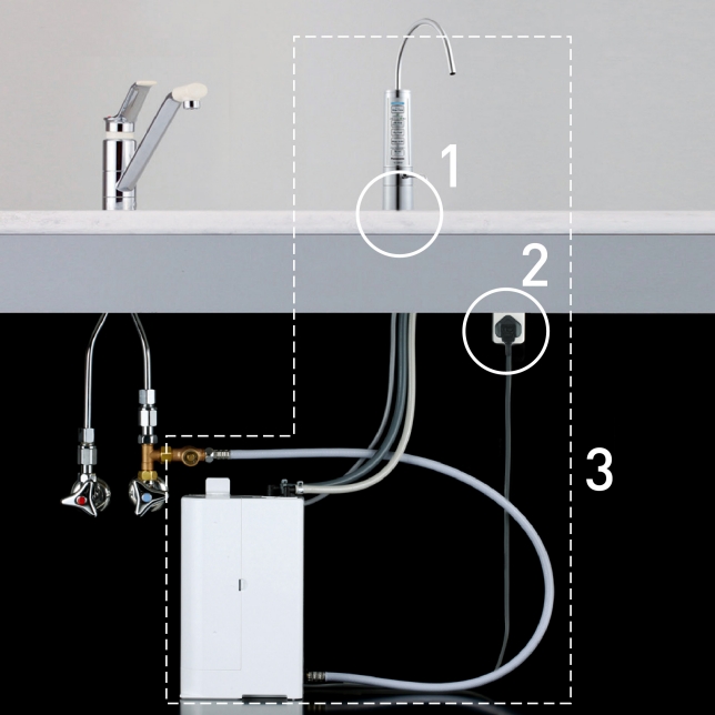 Với một vòi đặc biệt được gắn lên vùng quanh bồn rửa và một thiết bị chính được lắp đặt bên dưới bồn rửa. Kiểu đặt bên dưới bồn rửa giúp tạo thêm nét phong cách cho nhà bếp của bạn. Vòi đặc biệt cho phép bạn chọn loại nước bạn muốn sử dụng và kiểm soát lưu lượng nước.