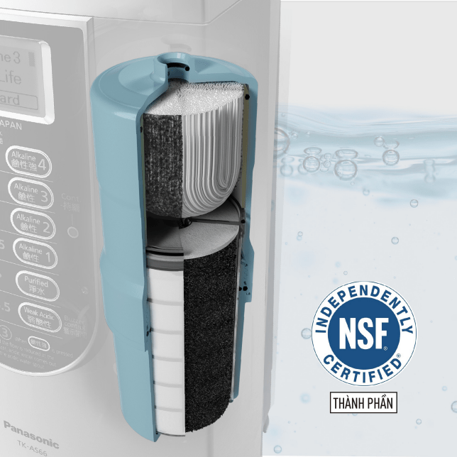 Nước từ Máy tạo nước ion kiềm của Panasonic được lọc kỹ càng bằng lõi lọc công suất cao.
