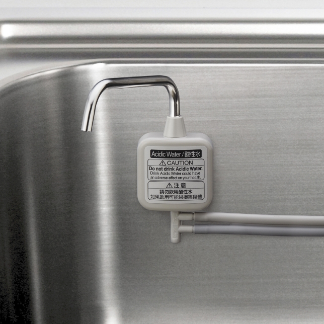(Nước có độ pH 3,0 là loại nước hữu ích để rửa các đồ vật và loại bỏ các vết trà trên cốc, là đầu ra từ giá đỡ nước axit khi chọn mức Kiềm 4 và xoay vòi để giảm lượng nước.)