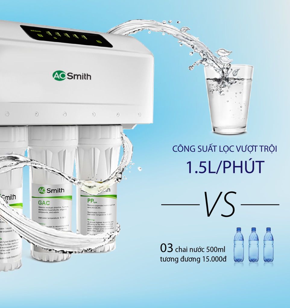 | Công suất lọc: | 600 GPD (94 lít/giờ) |
