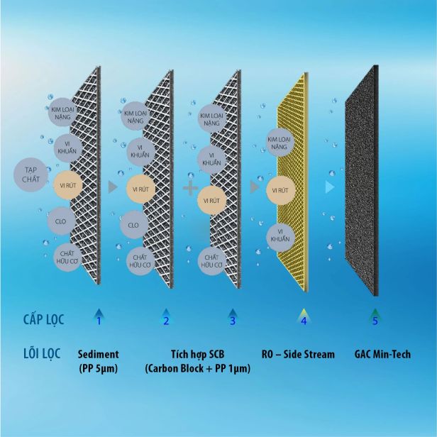 | Tổng số lõi lọc: | 4 lõi (5 cấp lọc) |