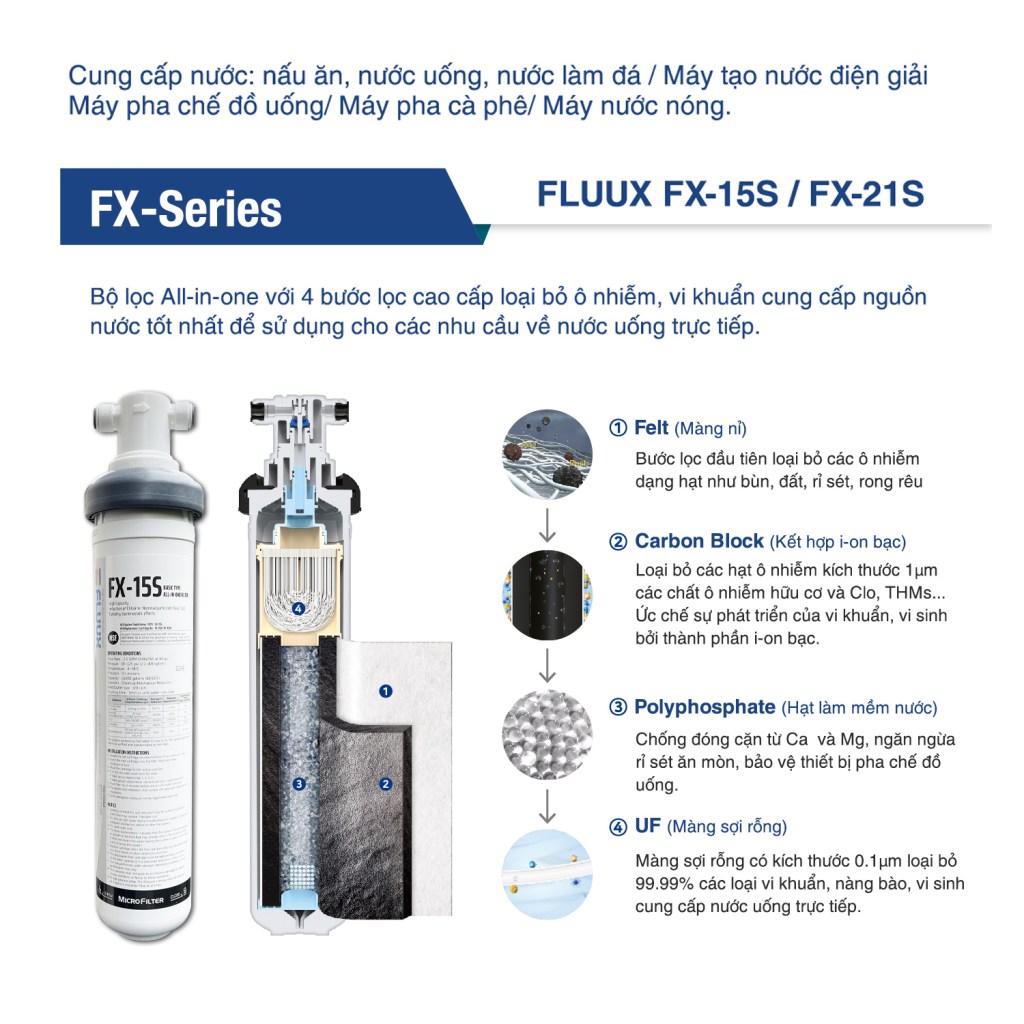 | Tổng số lõi lọc: | 1 (tích hợp 4 cấp lọc) |