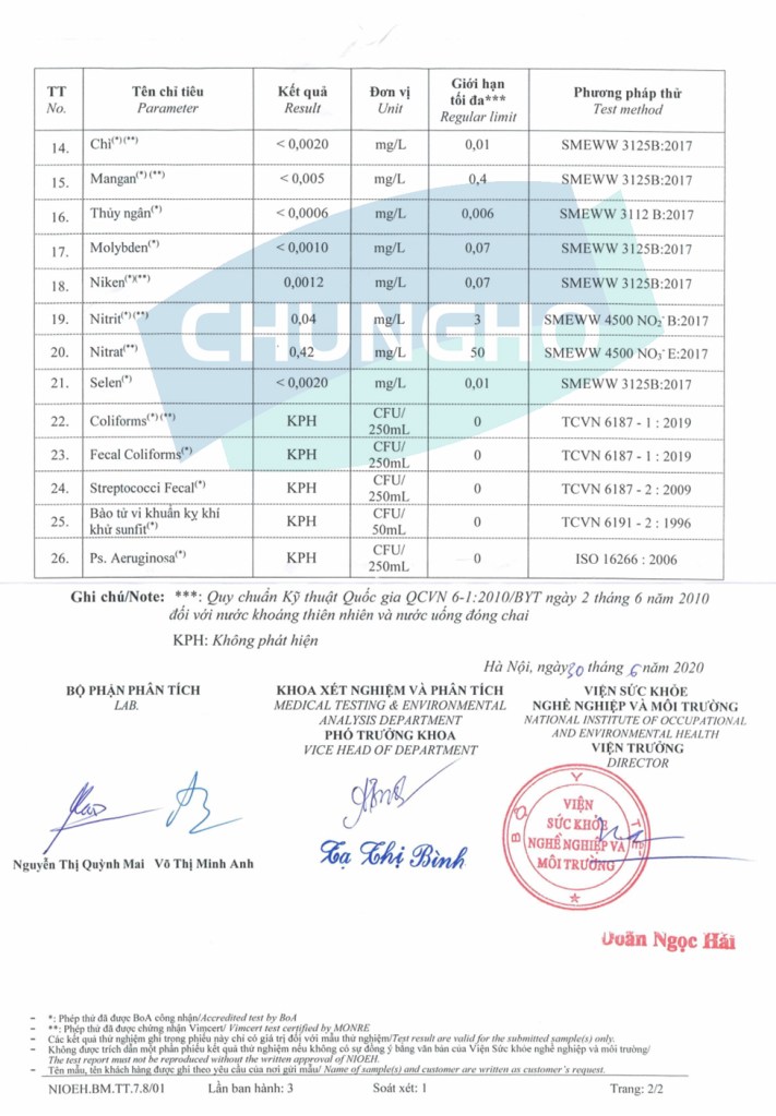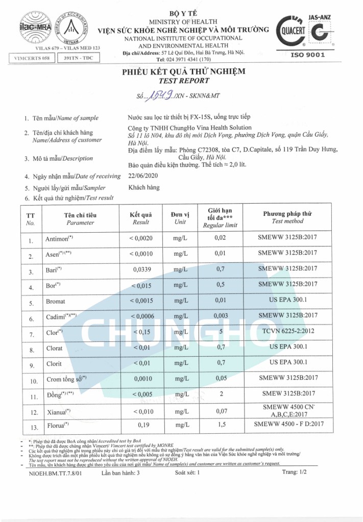 | Chất lượng nước cấp: | Nước máy sinh hoạt |