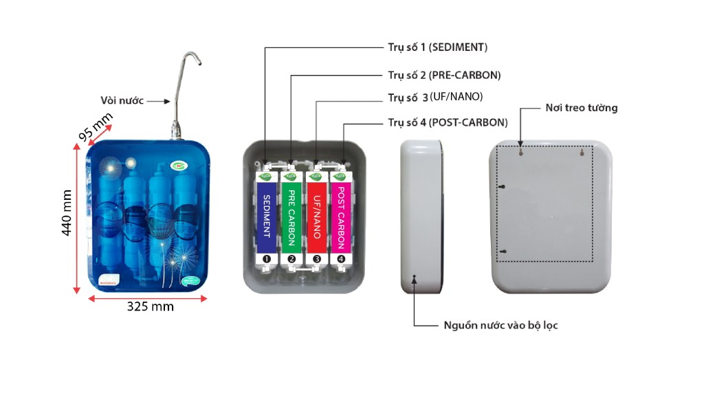 | Đặc điểm: | .Không dùng điện .Không nước thải .Treo tường, đặt trên mặt bếp hoặc lắp dưới bồn rửa |
