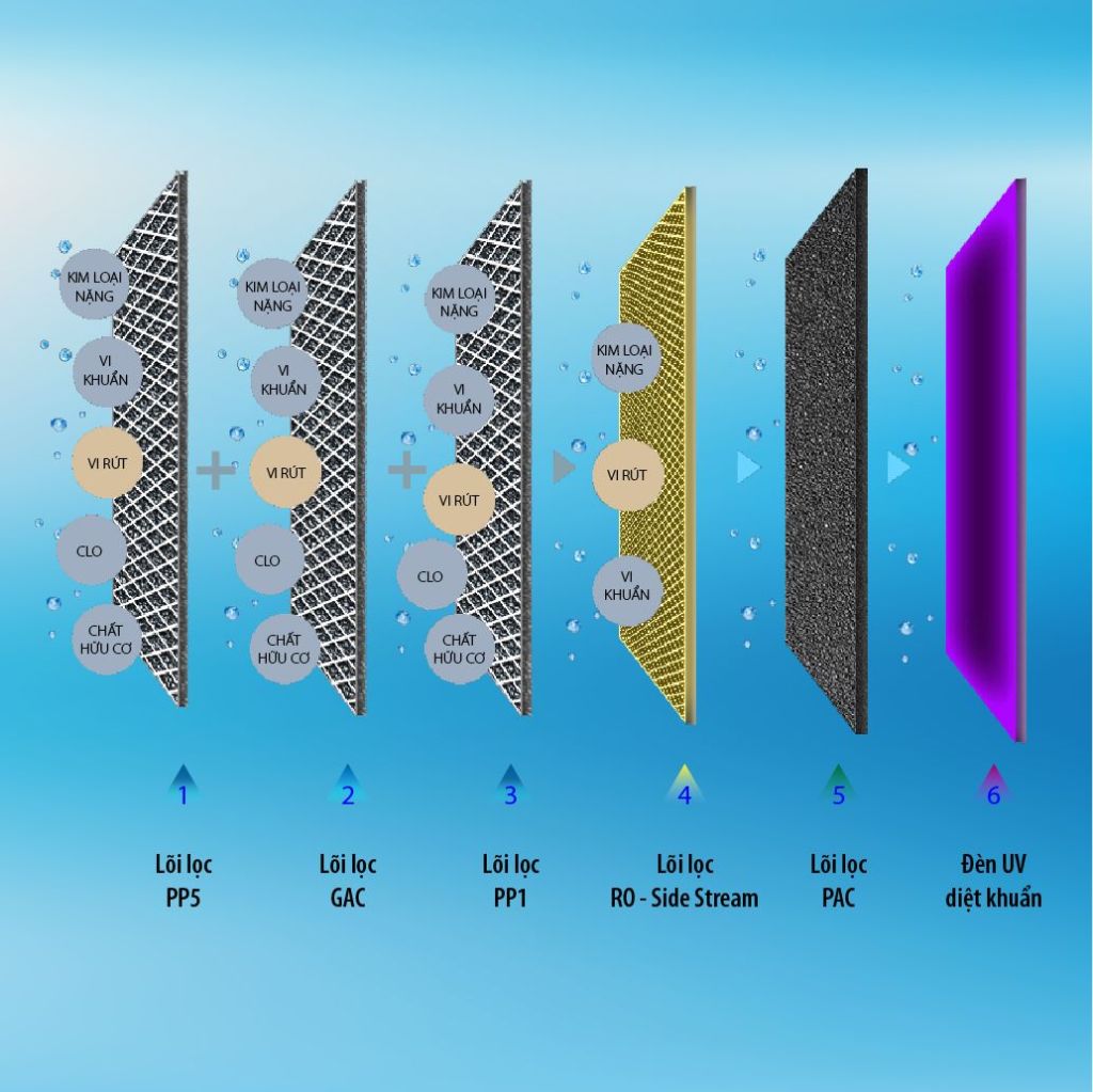 | Tổng số lõi lọc: | 5 lõi + đèn UV (6 cấp lọc) |