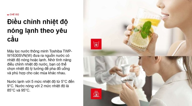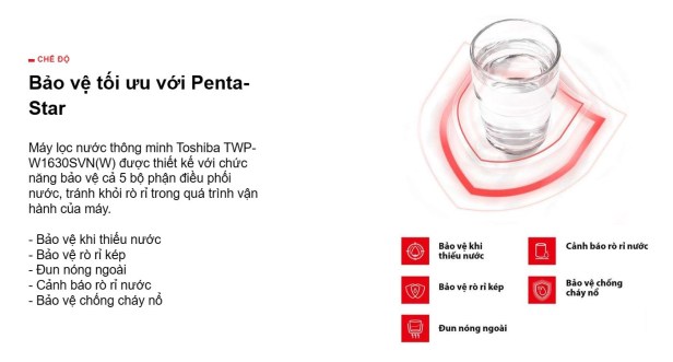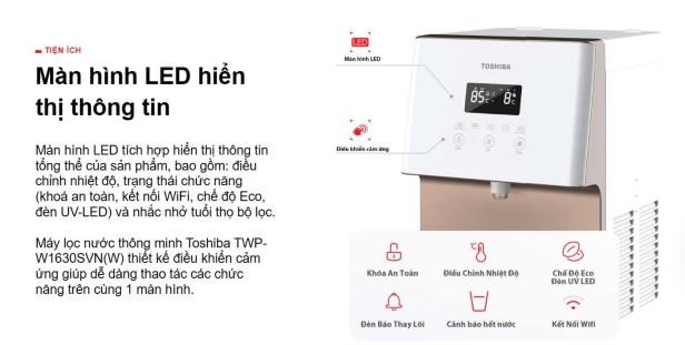 | Đặc điểm nổi bật: | .Lọc nước bổ sung khoáng chất .Thiết kế lõi lọc RO Vortex .Nút điều khiển cảm ứng .Chế độ cảm ứng ánh sáng ECO .Tùy chỉnh nhiệt độ nước nóng-lạnh .Màn hình LED hiển thị thông minh .Đèn báo nhắc thay lõi lọc nước .Diệt vi khuẩn trong bồn lạnh bằng đèn UV-LED .Bảo vệ 5 bộ phận điều phối nước với chức năng Penta-Star .Kiểm soát chất lượng nguồn nước bằng ứng dụng Toshiba TSmartLife | ||