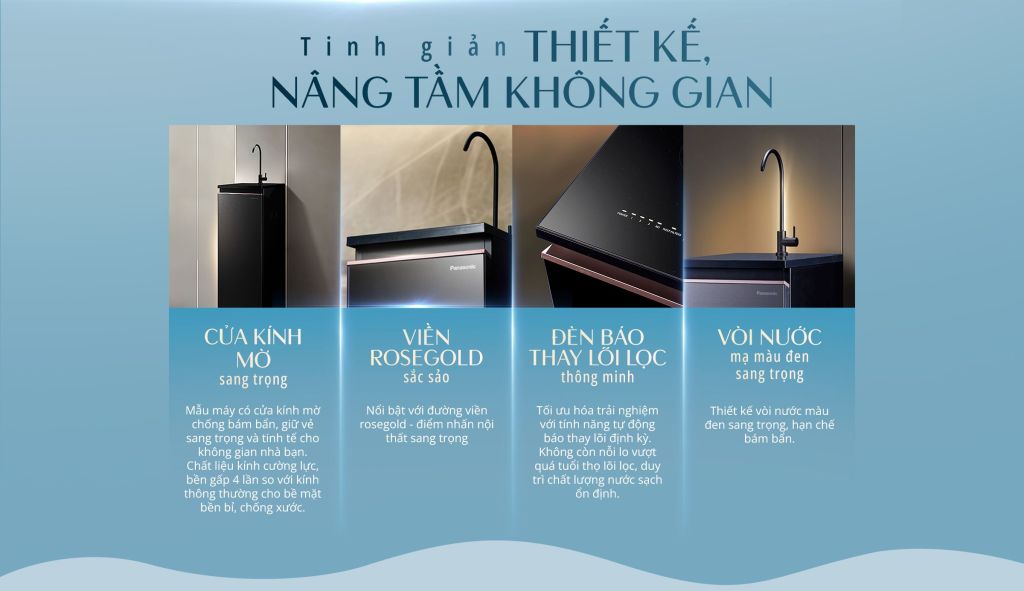 | Đặc điểm nổi bật: | .Lọc sạch 99,9 % vi khuẩn và virus .Bổ sung khoáng có lợi cho cơ thể .Đèn báo tuổi thọ lõi lọc .Chất liệu kính cường lực và thép cán nguội bền bỉ, đẳng cấp .Cửa kính mờ phối viền vàng đồng sang trọng, kiểu dáng slim hiện đại .Lưu lượng lọc lên đến 18 lít/giờ | ||