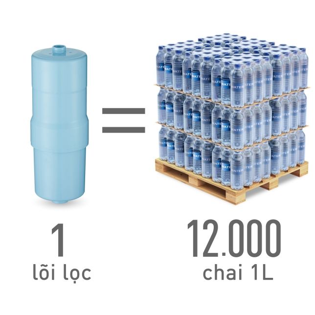 Chỉ một lõi lọc có thể làm sạch khoảng 12.000 L nước. Lõi lọc này có thể được dùng trong suốt một năm cho dù lọc đến 30 L nước mỗi ngày, giảm công sức và thời gian thay lõi lọc mới. Không cần phải mua nước đóng chai, bạn không chỉ tiết kiệm tiền bạc, mà còn giúp giảm lượng chai nhựa và thủy tinh thải ra môi trường.