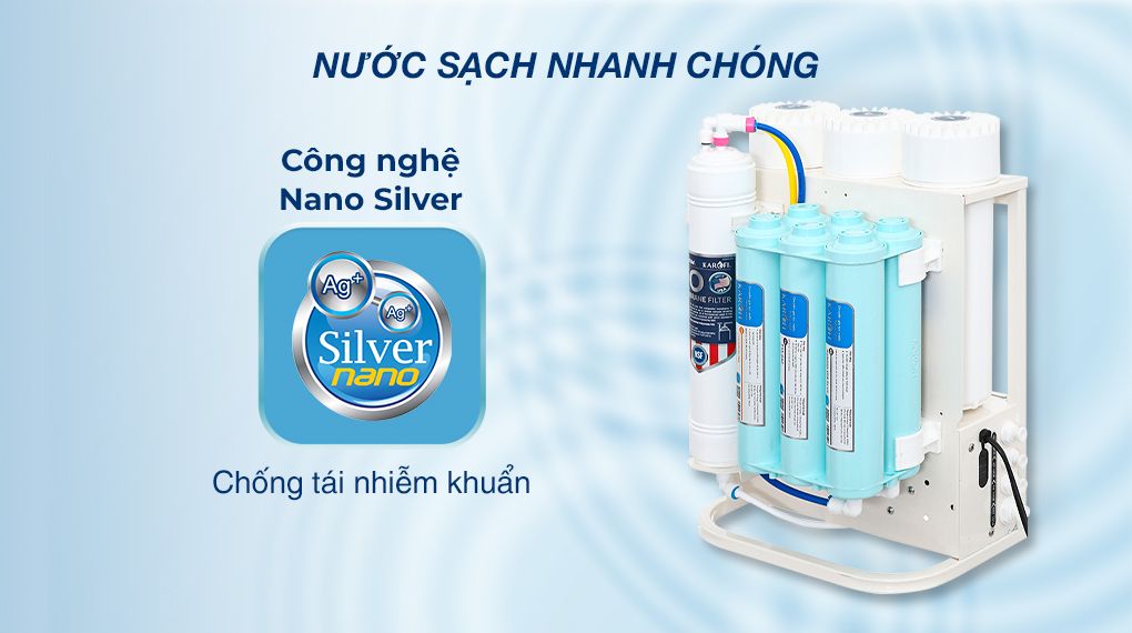 | Lõi số 8 (Lõi lọc Nano Silver Plus): | Tiêu diệt vi khuẩn, chống tái nhiễm khuẩn sau khi nước đi qua màng RO. |