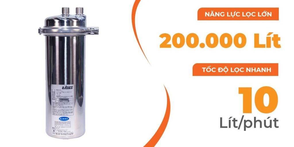 Tuổi thọ lõi lọc của sản phẩm đạt 200.000 lít, có thể sử dụng lâu dài từ 12 tháng mới phải thay. Tốc độ lọc nước nhanh 10 lít/phút hoàn toàn đáp ứng được yêu cầu cần nguồn nước sạch lớn, nhanh chóng như tại quán ăn, quán cafe, nhà hàng, các dịch vụ công cộng tắm hơi, máy giặt, …