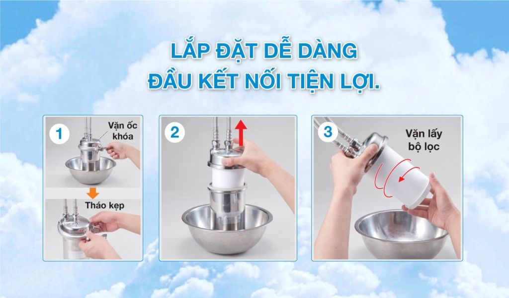Sản phẩm sử dụng lõi lọc với công nghệ Màng lọc sợi rỗng tiên tiến của Nhật Bản, hiện là một trong những công nghệ lọc nước tiên tiến nhất hiện nay, giúp nước sau lọc trở nên sạch, vị ngon hơn do vẫn giữ được các khoáng chất tự nhiên có lợi cho sức khỏe. Lõi lọc được cấu tạo gồm 4 cấp lọc: