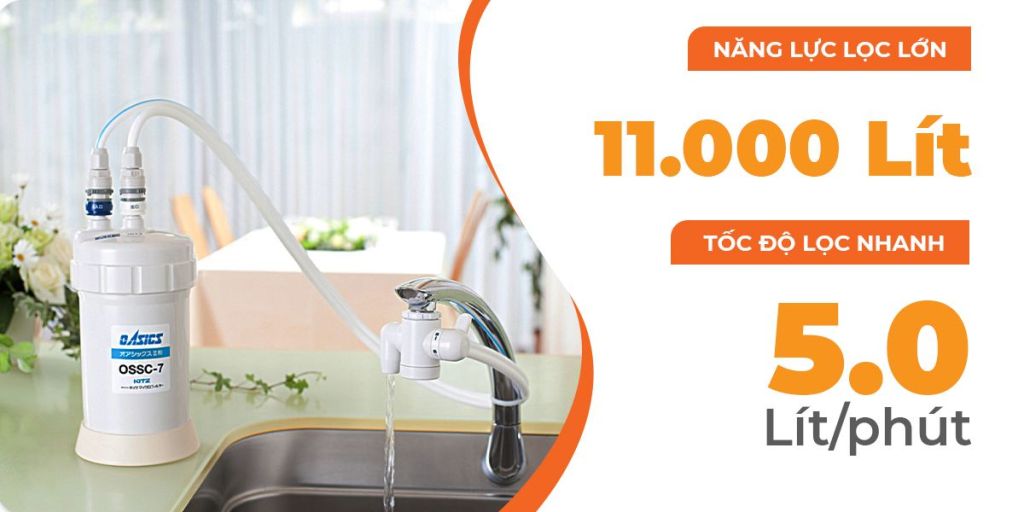 Tuổi thọ lõi lọc của sản phẩm đạt 11.000 lít, có thể sử dụng lâu dài từ 12-18 tháng mới phải thay. Tốc độ lọc nước nhanh 5 lít/phút hoàn toàn đáp ứng được yêu cầu cần nguồn nước lọc nhanh phục vụ nhu cầu UỐNG – NẤU ĂN và RỬA RAU QUẢ.