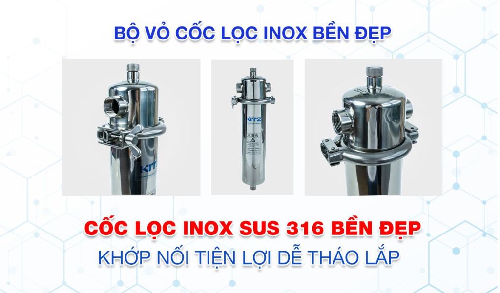 | Đặc điểm nổi bật: | .Vỏ chứa lõi lọc làm bằng inox 316, bền bỉ theo thời gian, có chức năng xả đáy .Tốc độ lọc nhanh .Dễ dàng lắp đặt, thay thế lõi lọc .Không sử dụng điện – không nước thải |